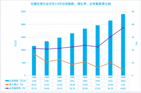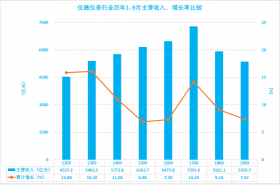 2.1 仪器仪表行业历年1-9月主营收入、增长率比较
